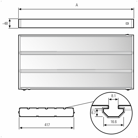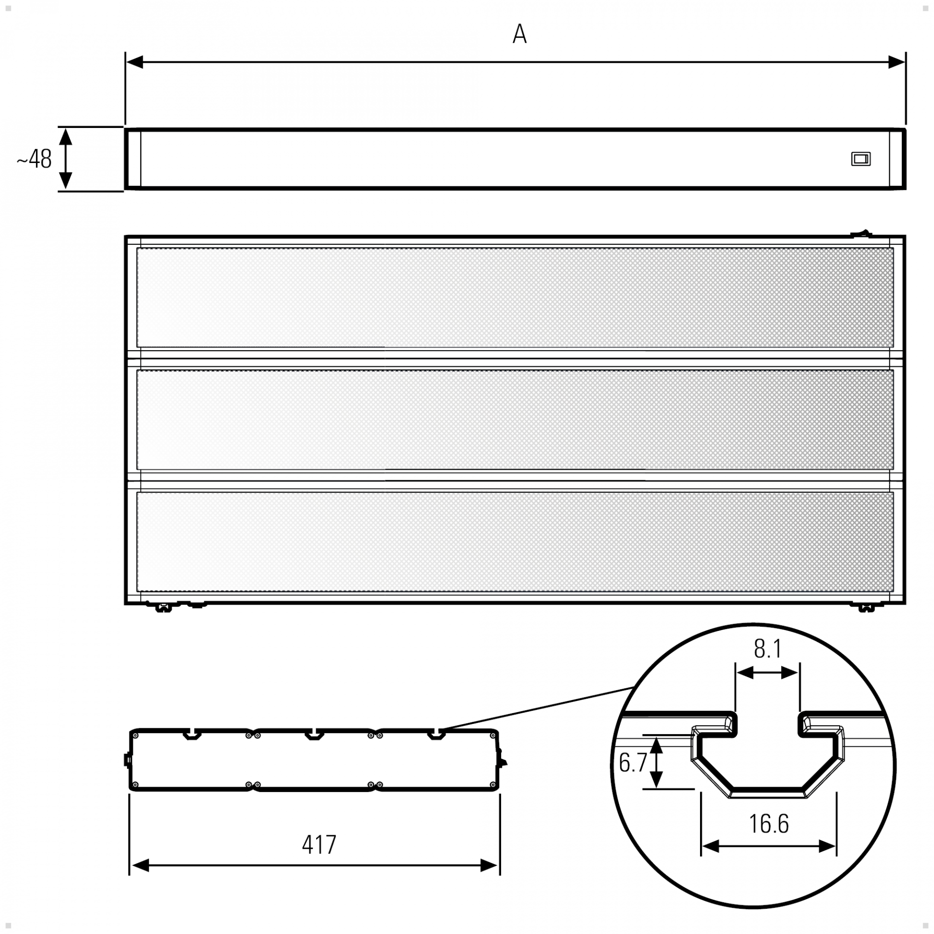 Enheden er et robust påbygningsarmatur med integrerede 6/8-dobbelte T-slots spor. SurfaceOne kan fleksibelt integreres i arbejdsstationer, teststationer, inspektionsborde og lignende.
