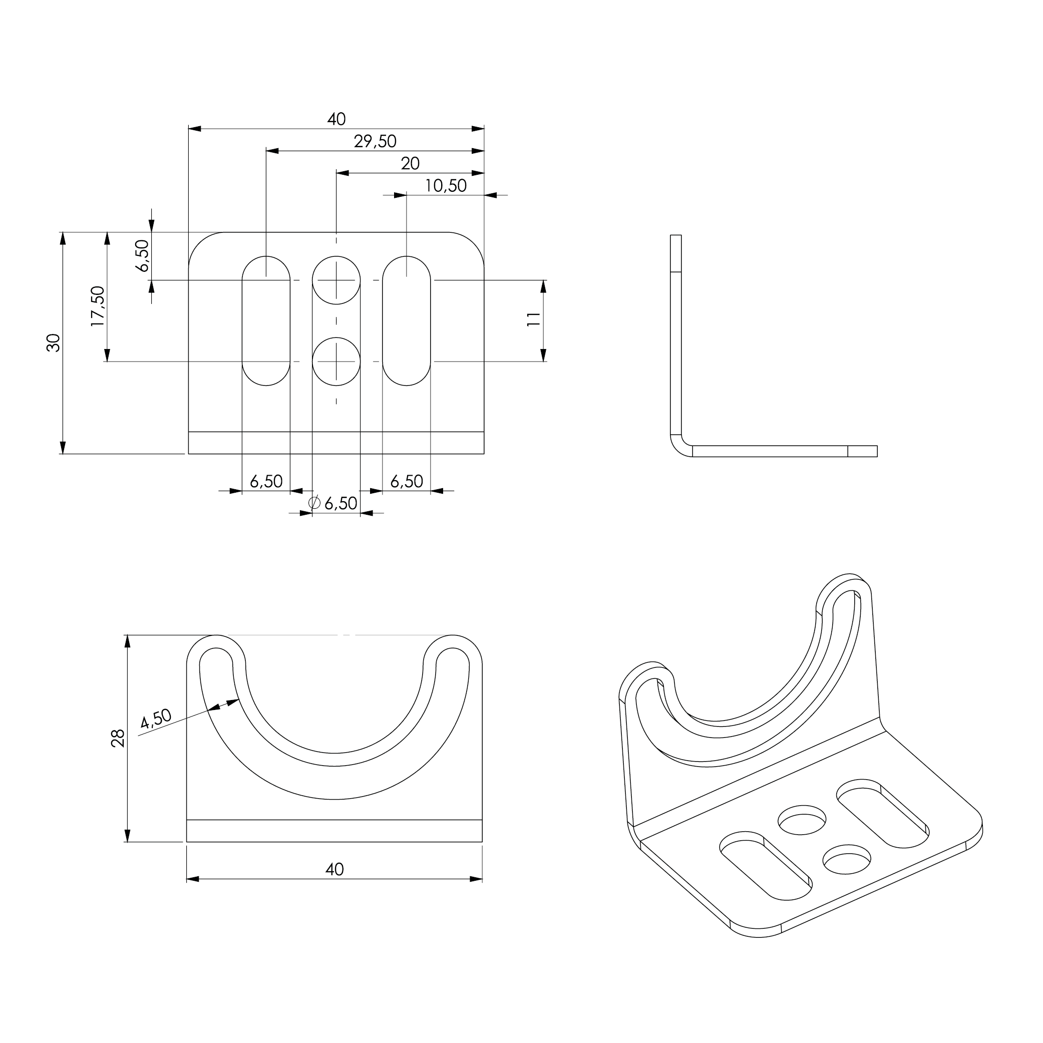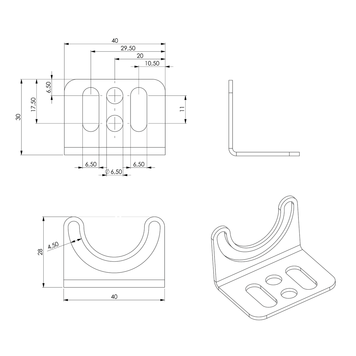 LED2WORK Rustfrie vinkelbeslag for TUBELED Ø40mm lamper.
