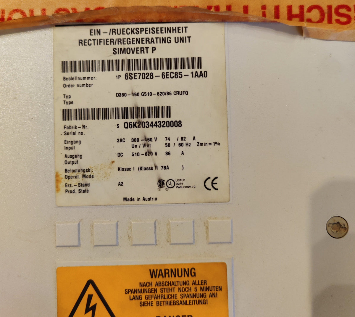 Siemens SIMOVERT P, Masterdrive (6SE7028-6EC85-1AA0)
