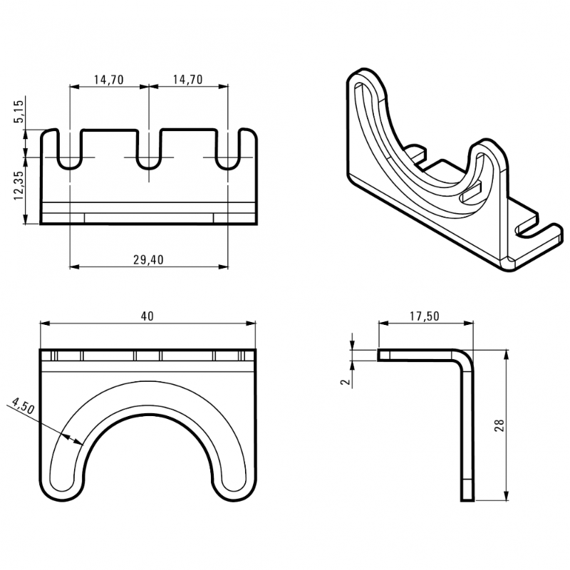 LED2WORK Rustfrie vinkelbeslag for TUBELED Ø40mm lamper.