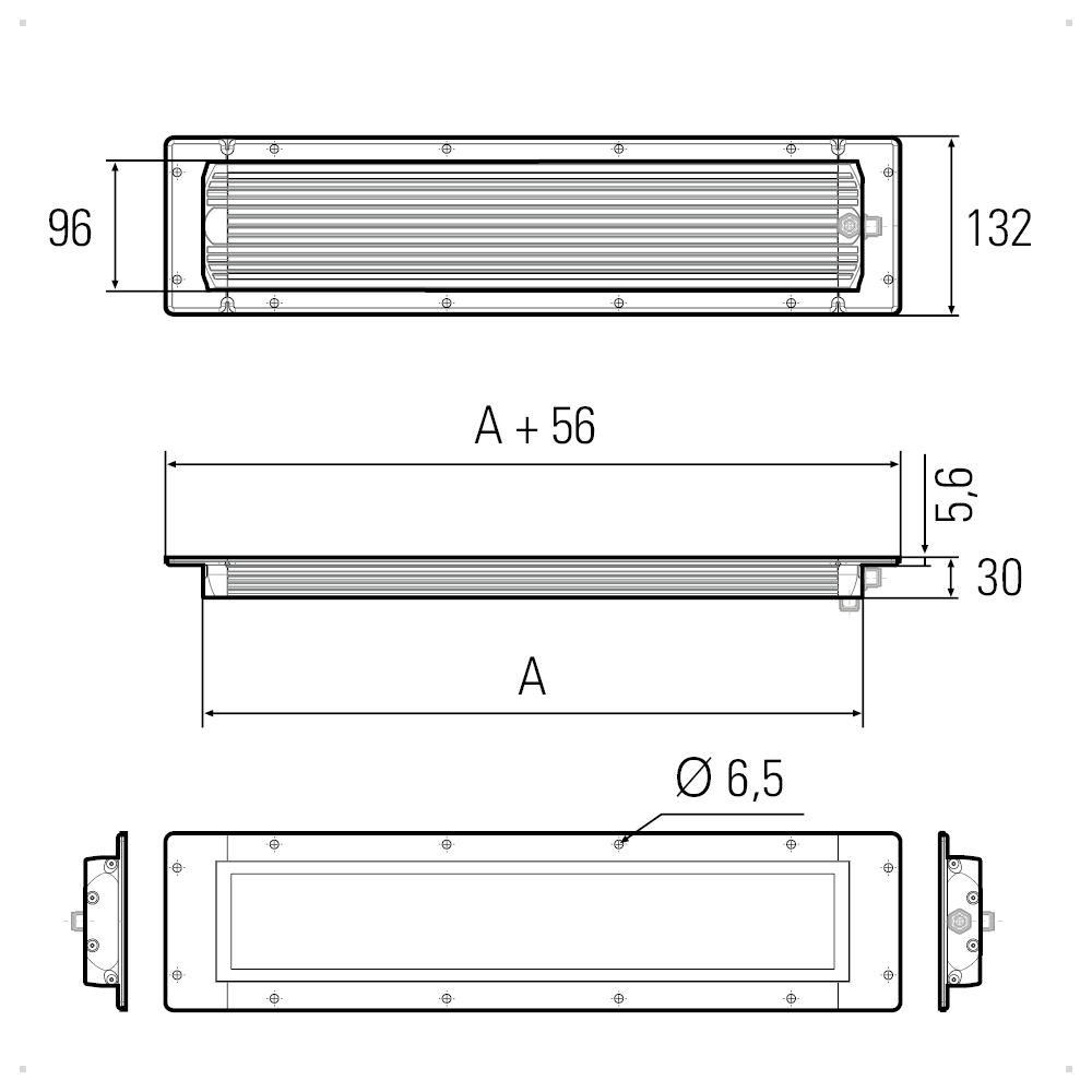 Mål i mm: L: 280/336-1040/1096 / B: 96/132 / H: ca. 30.